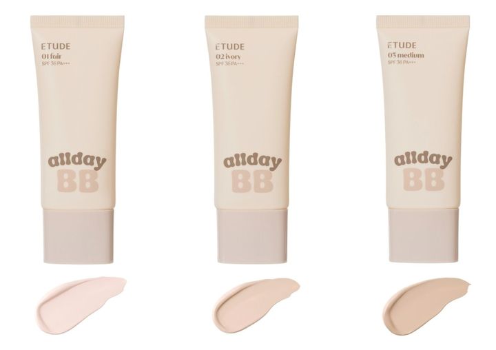オールデーグラススキンBBクリーム(フェア、ライト、ミディアムベージュ)各35ml ¥1,650/エチュード