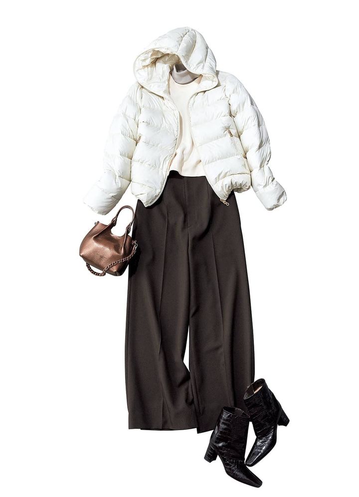 3. 太って見えるって本当?【ダウン×ワイドパンツ】こう着れば華奢見え!〈5選〉