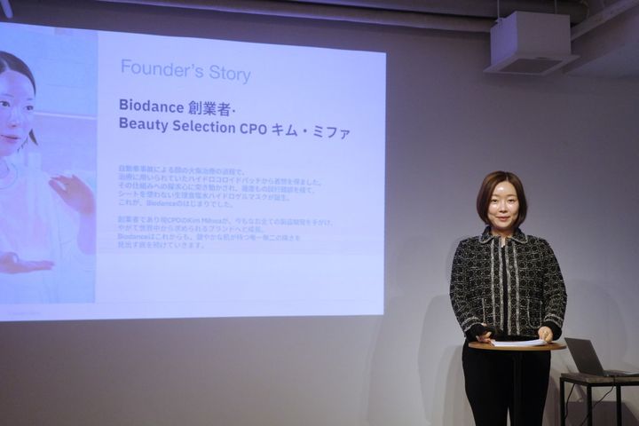 開催に伴い、メディア関係者向けにイベントを実施。ブランド創業者であるキム・ミファ氏が登壇し、ブランドの成り立ちや代表製品、新製品について解説しました。
