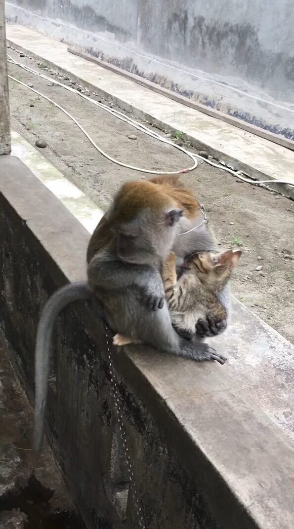 ちょっと変わったサルの親子?サルがだっこする我が子は・・子猫だ!!【海外・動画】