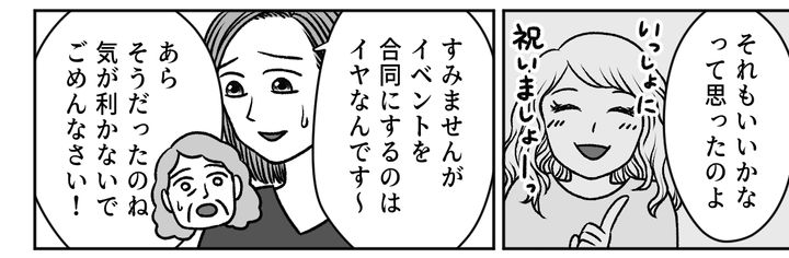 アンジュちゃんの家では家族のお祝いごとは、合同でするのが定番だったそうです。それは各家庭の自由ですし、間違っているとは思いません。ただ、私はお祝いごとを被せられるのはイヤなのです。これは価値観の問題ですし、イヤなものはイヤだとハッキリ伝えないと、この先もずっと理解してもらえなかったでしょう。
