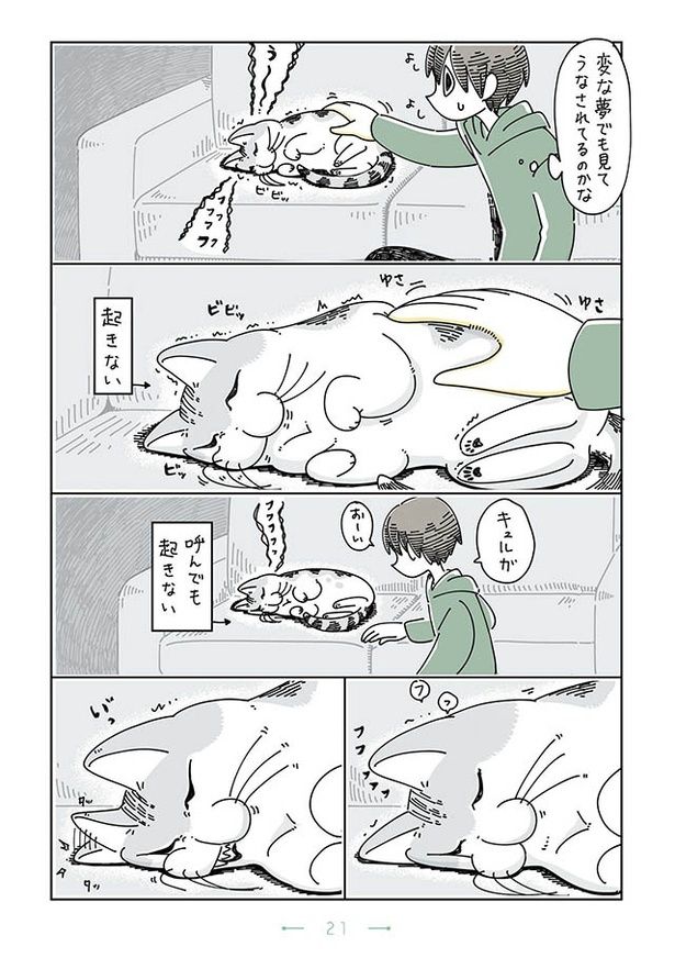 触っても呼んでも起きなかったのになぜ? 爆睡中の猫がとび起きた意外なきっかけ/夜は猫といっしょ3(33)