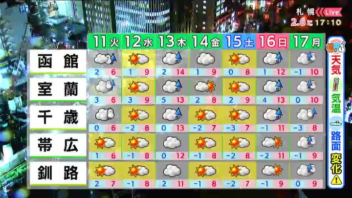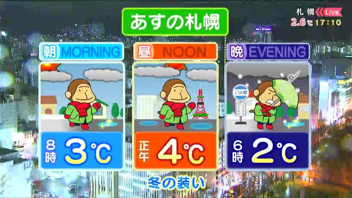 背景は10日午後5時ごろの札幌情報カメラ