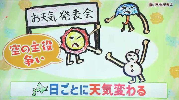 HBCテレビ「今日ドキッ!」の番組内でも独特(?)なイラストを使って天気をお伝えしています。