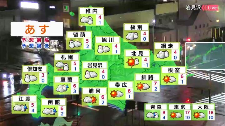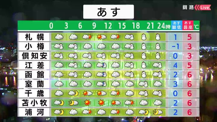 ・あすの札幌の朝昼晩の天気