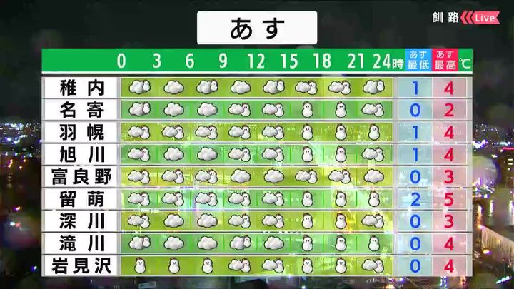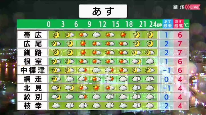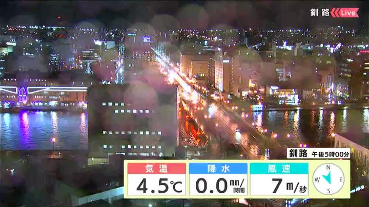 背景は10日午後5時ごろの釧路情報カメラ