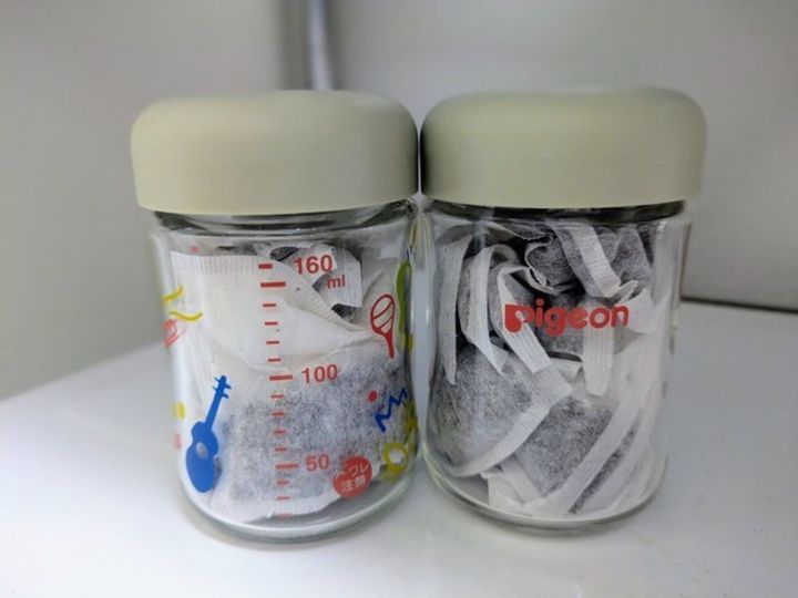 これはナイスアイデアですよね!見た目も何となくおしゃれ感があって、紅茶パックや飴やクッキーなど小さなお菓子を入れるアイテムとして大活躍してくれそう。哺乳瓶を見るたびに、わが子の乳児期を思い出して、育児の余韻に浸ることができるなんて、とってもステキですね。