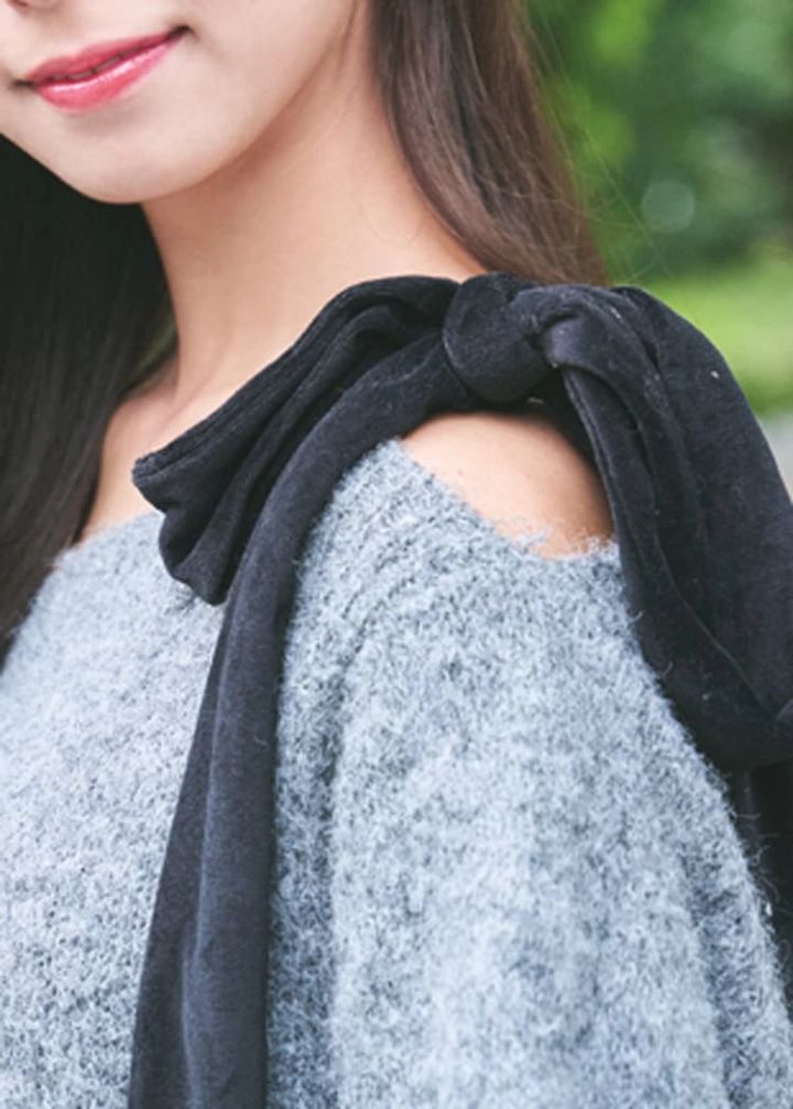 「リボンのワンショルダーがついたニットワンピはGRLで約4,000円。1枚でオトナ可愛くなれるすぐれもの