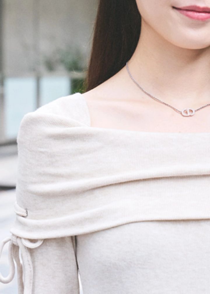 「Lasagedのトップスは約3,000円。肩がカバーされたスクエアネックで、キレイなデコルテ見せが叶います。