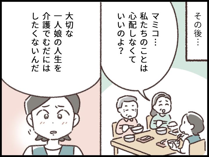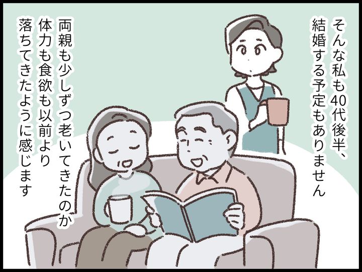 【マンガ】一人っ子で実家暮らしの40代女性は悩む「弱ってきた両親の介護は私1人でするしかないの?」