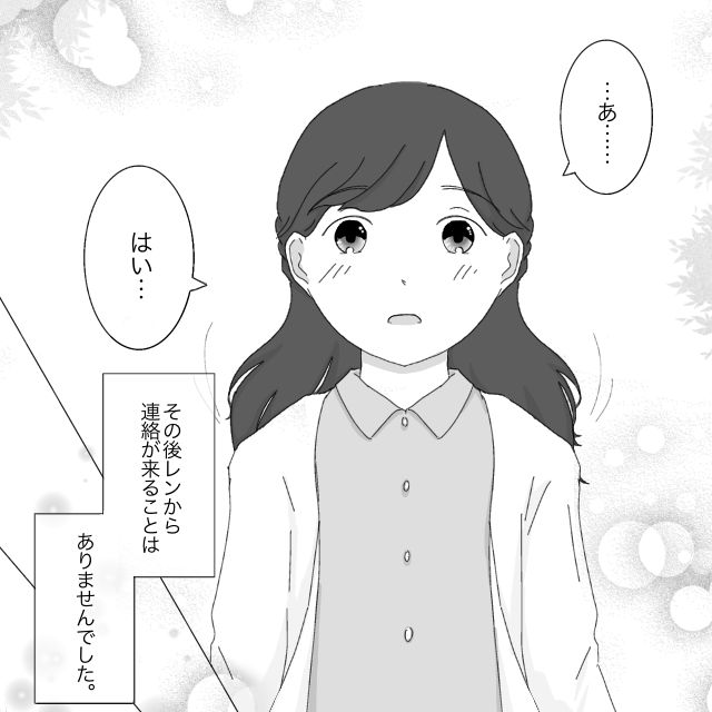 アツシくんの優しさにドキッとしながら、私は「・・あ・・はい・・」と答えるのが精一杯でした。その後、レンから連絡が来ることはありませんでした。