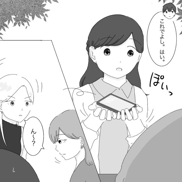 スマホの画面を見て、ようやくアツシくんが何をしていたのか理解した私。「え・・?」と戸惑っていると、モカとカナコが「やるぅ~」「イヤイヤ、きもいってアツシ笑」と笑顔で言い、「うるせーな」と照れながら言うアツシくん。