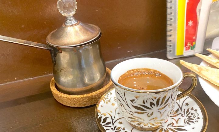 神楽坂・アラブの軽食を楽しめるカフェ「アブ・イサーム」のアラビックコーヒー(税別450円)。