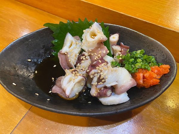 タコイボポン酢(480円) こちらは活きの良さが見てわかるタコのぶつ切りポン酢です。コリコリの食感にやさしめのポン酢です。
