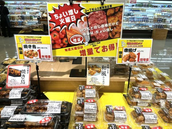 たとえば、先月からスタートしたコープ松山三越独自企画【ちょい増し火曜日】のことも事前に知ることができます。