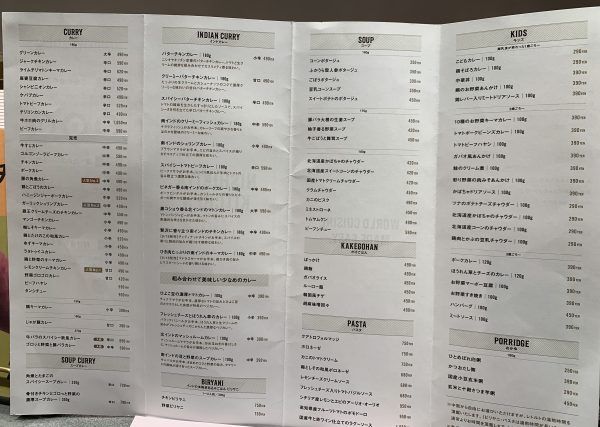 CURRY、INDIAN CURRY、BIRYANI、SOUP、KAKEGOHAN(かけごはん)、PASTA・・・。 目移りしちゃって・・・。