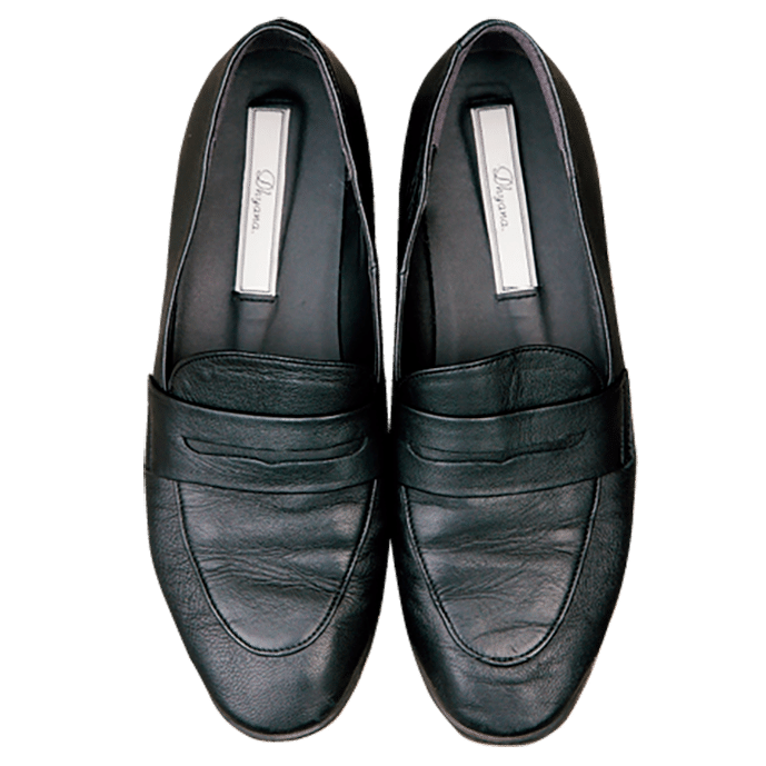 綾さんが理想を追求したペニーローファー。そぎ落としたデザインとソフトなレザーの足当たりのよさが人気! 本人私物