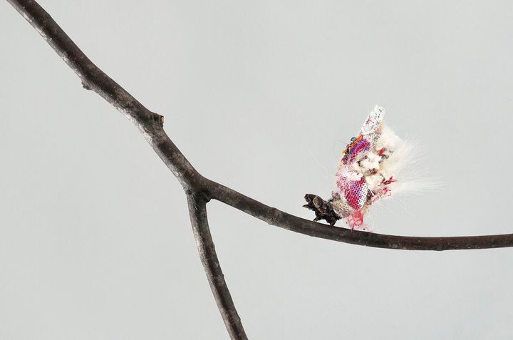 そうした変容する住人と「やど」の在り方は、国境や国の土地は政治的かつ人為的に容易に変化すると痛感する現在の世界情勢を連想させる。《girl, girl, girl...》や《彫刻のつくりかた》も同様。ミノムシやビーバーが仕立て、あるいは削った造形を生かした作品は、新鮮味や驚きをもたらす一方で、ファッションやアートの観点では、膨張し続ける現在の資本主義経済の姿を映し出す。