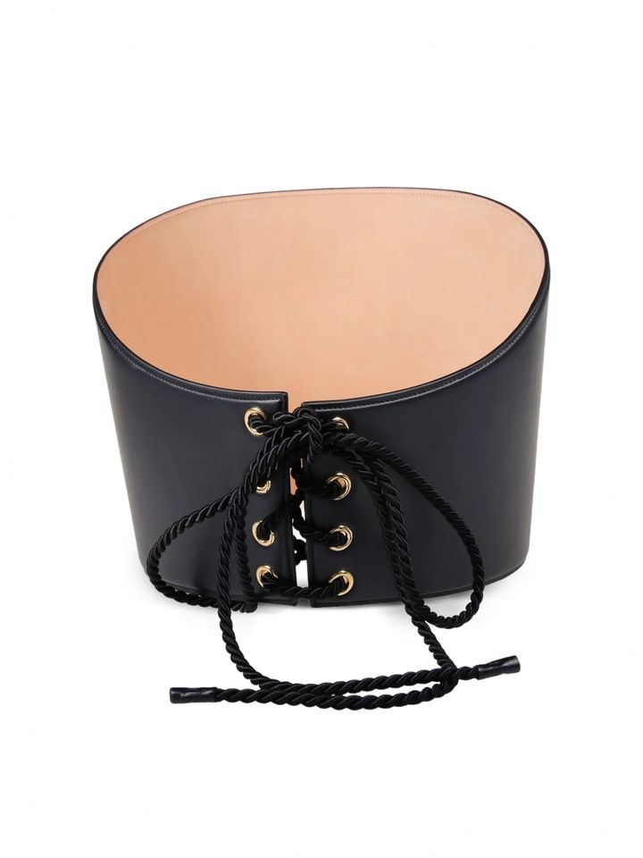 フェティッシュな雰囲気が漂うコルセットタイプで人と差をつけるのもあり。シャツやミニドレスの上に重ねて、ドラマティックな着こなしを謳歌しよう。