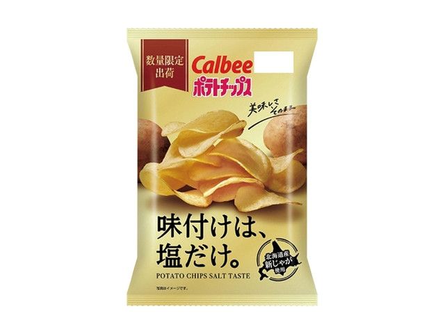 カルビー ポテトチップス 味付けは、塩だけ。