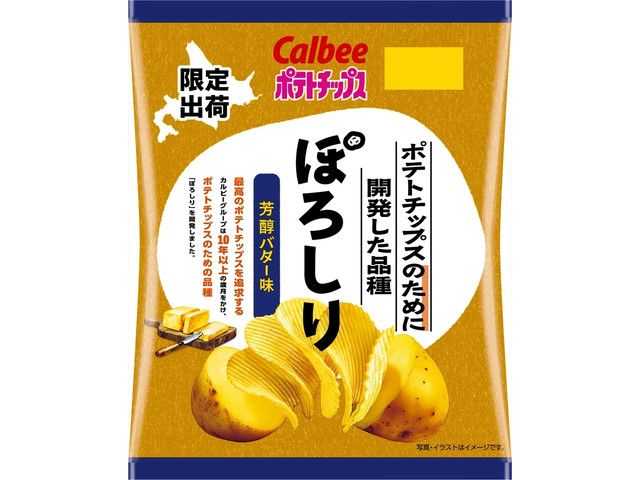 ●カルビーグループがポテトチップスのために開発したジャガイモ品種「ぽろしり」のみを使用したポテトチップスです。今年収穫した「ぽろしり」の味わいを楽しめます。 ●「芳醇バター味」は、クリーミーで濃厚感のあるバター味です。北海道製造バターを使用しています。