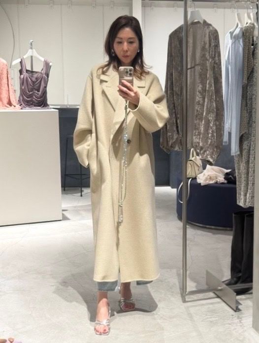 毎年出ている定番人気コートで、たっぷりのロング丈がSTORY世代に嬉しいリュクス感。バサッと羽織るだけでラフさと抜け感が出て◎。微光沢のあるなめらかな素材は大人の肌映えも良く、シワにもなりにくいのも嬉しいポイント。ロング丈だからこそ、重くならないアイボリーを選んで大人のワントーンコーデを楽しみたいです。