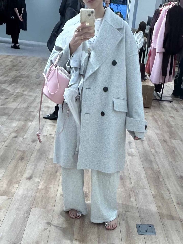 ラフに羽織るだけでモードで都会的な印象を叶える、オーバーサイズシルエットが可愛い!グレーの色味も上品で、冬は淡いグレーのワントーンやホワイト合わせも素敵に映えそうです。昨年からずっと気になっていたPコートですが、肩の落ち感や丈のバランス、しっかりした生地なのに軽い着心地もお気に入り。大人が品よく着られるエレガントなPコートは、この冬の主役になってくれそうです。