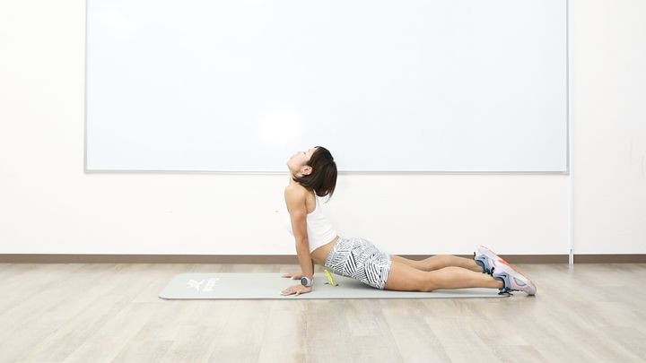 うつ伏せの状態から、両腕で上体を押し上げます。左右にひねってもOKです。