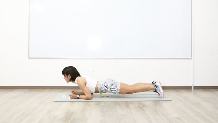 うつ伏せの状態から肘とつま先で体を支えます。頭からかかとまでは、一直線を意識しましょう。