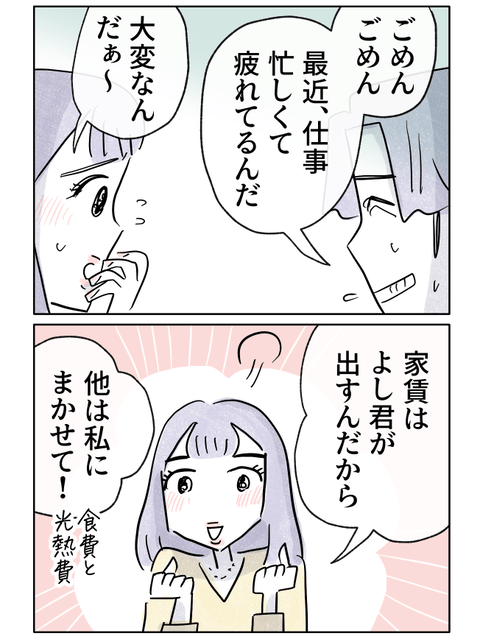 そんな中、デートの最中に彼女から同棲中の生活費の話を持ちかけられます。家賃は弟が負担し、食費と光熱費は自分が出すという彼女の提案に、弟は内心ほっとしました。
