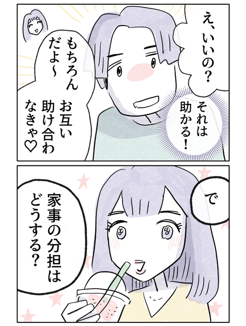 ところが彼女はすぐに家事の分担について話を進めます。