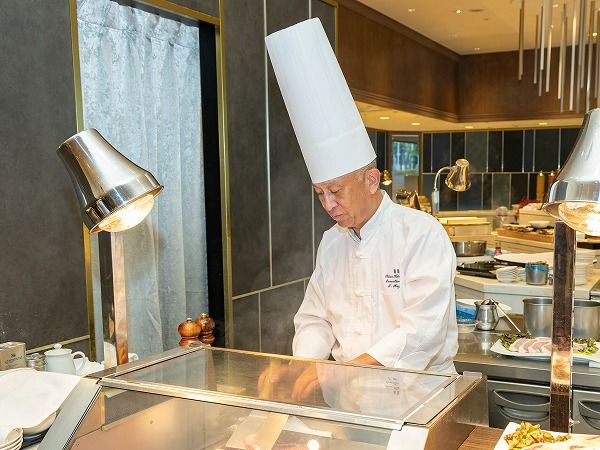 【ポイント2】シェフが目の前で調理してくれる「ライブカウンター」。香りと音で楽しむ豪華なブッフェ