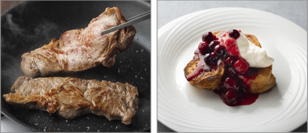 そのほかにも、国産牛のミニッツステーキや、ふんわり焼き上げるフレンチトーストなどがスタンバイ。目の前で調理され、できたてをいただくことができます。