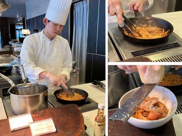 パレスホテル大宮のお膝元である“大宮”のご当地グルメ「大宮ナポリタン」もメニューに仲間入り! 注文後に、野菜を炒めるところから始まる一連の調理工程を見ながら完成品を待つのも一興です。仕上げにチーズをしっかり削ってもらえる点もポイントが高いですね。