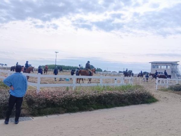 馬術場ではみなさん楽しく乗馬していました。