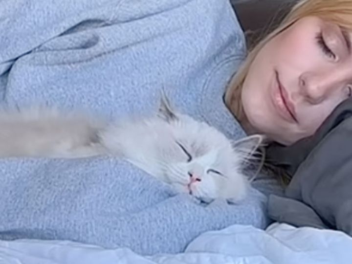 お腹→顔→腕の中へ どんどん近づく子猫さんの甘え方が可愛い