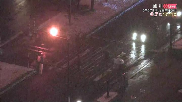 旭川では今朝、今シーズン最大となる10センチの積雪を観測しました。引き続き濡れた路面の凍結に注意して下さい。