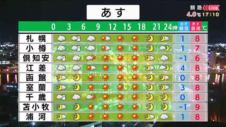 あす12日(水)の札幌です!朝昼晩の天気をもんすけでお伝えします!