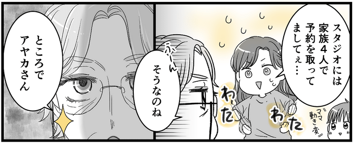 すると義母が「私も行こうかしら」と言い出しました。私は内心、戸惑いました。正直なところ、義母が一緒だと何かと口出しされそうで気が重かったのです。そこで私は、「スタジオには家族4人で予約を取っているんです」と、やんわりと断るように伝えました。