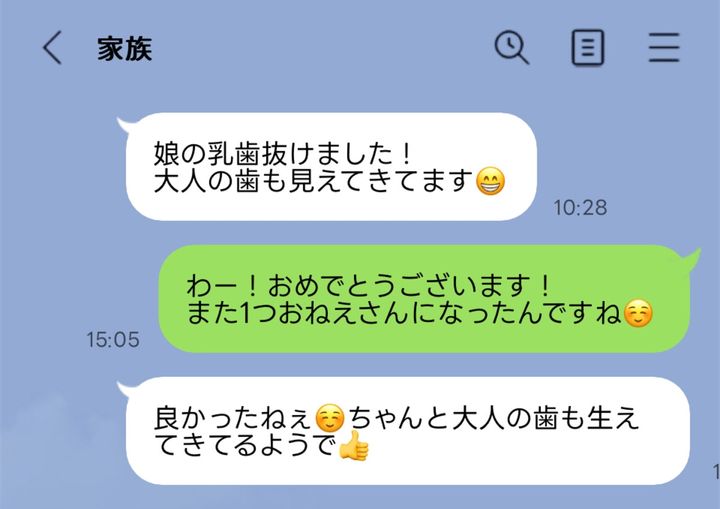 義兄と義兄嫁が乳歯が抜けたことを義実家の家族LINEで逐一報告してきます。動画付きで