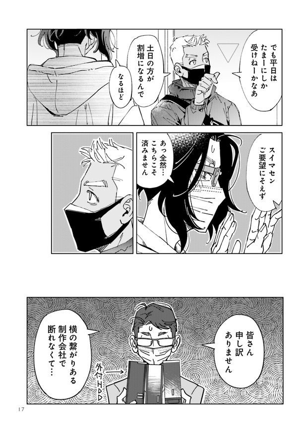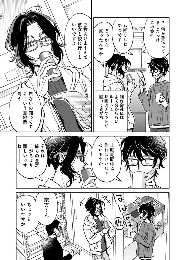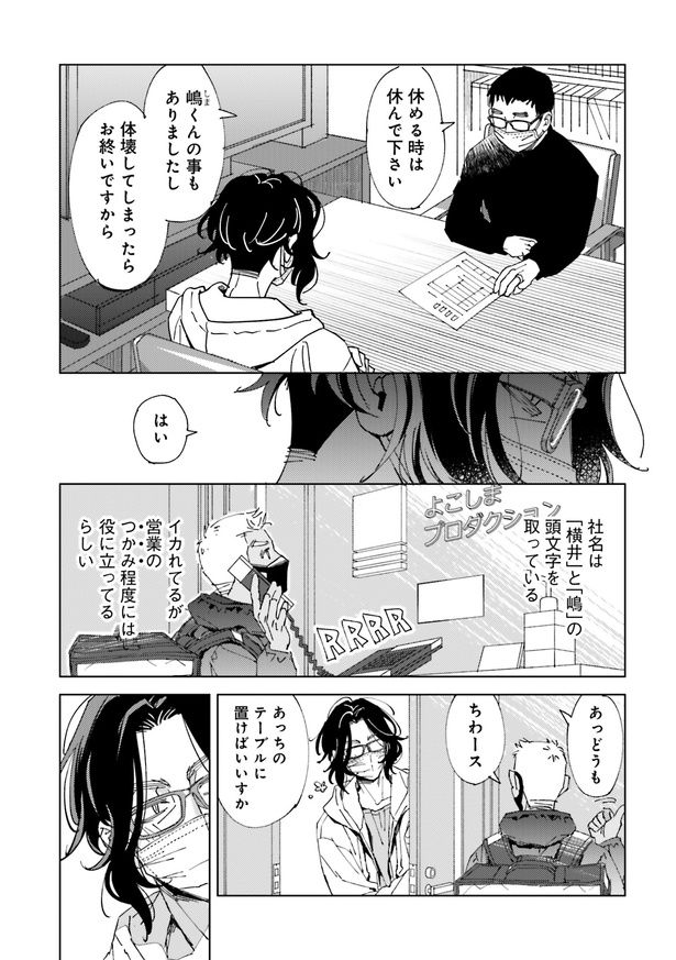 都内の映像制作会社で働く社畜陰キャなおじさん・宗方。休日出勤は当たり前、日々仕事に追われるなか、宗方の心のオアシスとなっているのは、会社にやってくるフードデリバリーのイケメン配達員・橘だ。顔面“SSR”な上、いつもきっちり時間厳守で配達してくれる橘に、宗方は密かな想いを寄せていた。今日も今日とて休日出勤に明け暮れる宗方だったが、配達のお礼として橘に映画の招待券をプレゼントしたことをきっかけに、2人の関係は少しずつ変化して――? 11月10日に第1巻が発売!『配達のお兄さんが気になる社畜のおじさんの話』をお楽しみください!