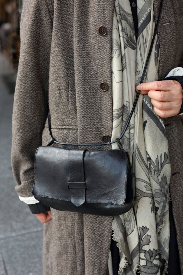 「このマルジェラのポシェットは、25年ぐらい前にパリで買ったもの。ファリエロ サルティのストールはコットンシルク。軽くて肌ざわりもよくて、コートからのぞかせると華やかに見えます」(須田さん)