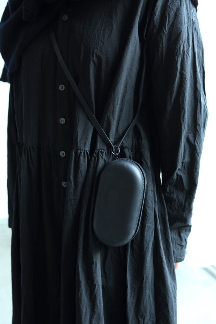 斜めがけした小さなポシェット。「じつはメガネケースなんです」と笑う須田さん。着こなしのアクセントになって、リップやコインケースなどの小物が入ります。