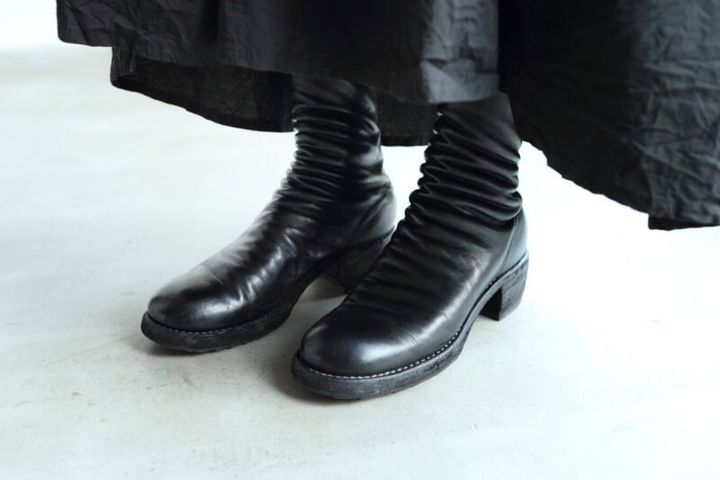 イタリアの老舗シューズメーカーのブーツは、アッパーにドレープを寄せたデザインがエレガントです。「黒のワンピースやスカートには、このブーツを合わせることが多いですね」(須田さん)