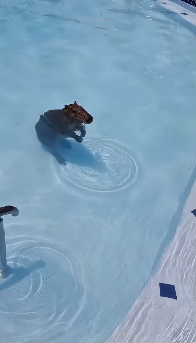 3. カピバラがプールを独占!?水中に潜りひと泳ぎする姿にプールサイドのみんな釘付け!【海外・動画】