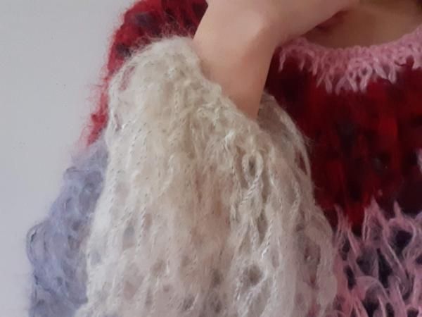 手にとってみると、とても軽くて毛糸もユニークで繊細な色使いのものばかり。そして特徴的なポワンとした袖のデザインが何とも言えない可愛さ♡♡