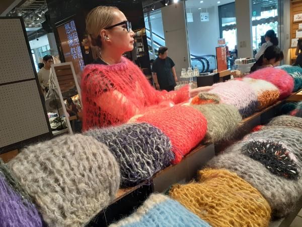 使用している毛糸は主にモヘアで、豊富なカラーと手編みでしか表現できないデザインをカタチにするために、国内だけでなく海外のメーカーからも輸入しているそうです。