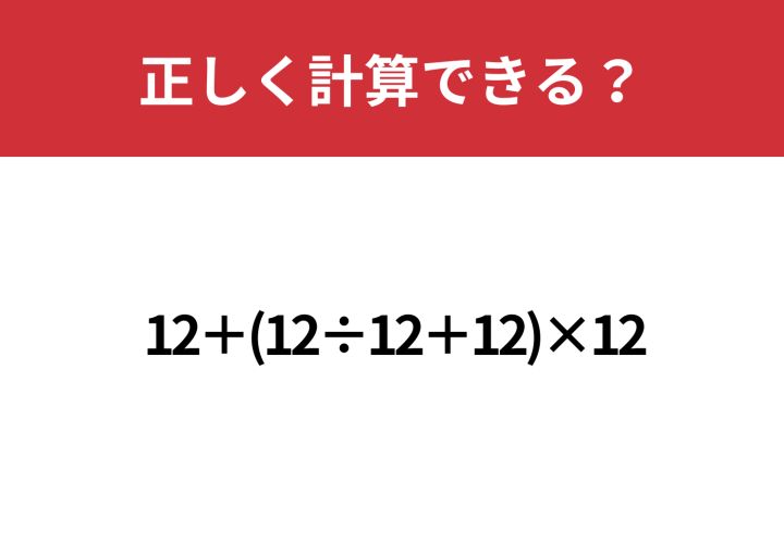 「12+(12÷12+12)×12」正しく計算できる?