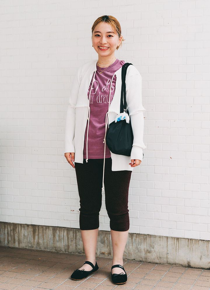 Instagram:@_erierie伸縮性抜群の『ミディアム』のニットハーフパンツに、『コトハ ヨコザワ』のリブカーディガンを合わせたリラックスムード漂うアスレジャースタイル。足元には『ミュウミュウ』のメリージェーンを合わせて、ほどよく甘さをプラス。カジュアルななかにフェミニンなムードが香る、旬なバレエコアが完成。item▼