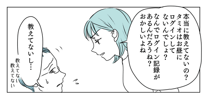 夫は目も合わさずボソボソと言います。「教えてないし」をただ繰り返すので、話が進みません。